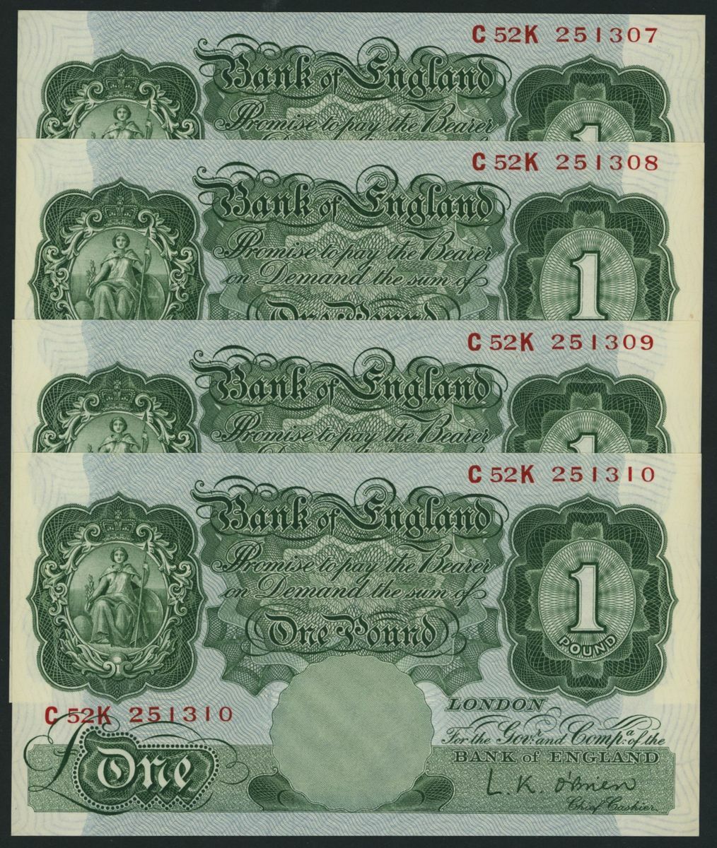 £1 (4), ND (1955), consecutive serial numbers C25K 251907-10;