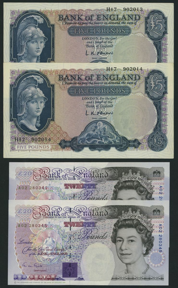 £20 (2), ND (1991), serial numbers A02 280341 and A02 280345,