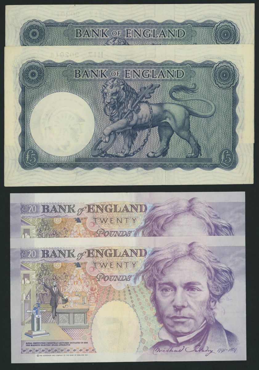 [FIRST SERIES] £5 (2), ND (1957), consecutive serial numbers H17 902013-4