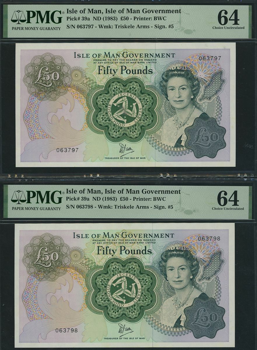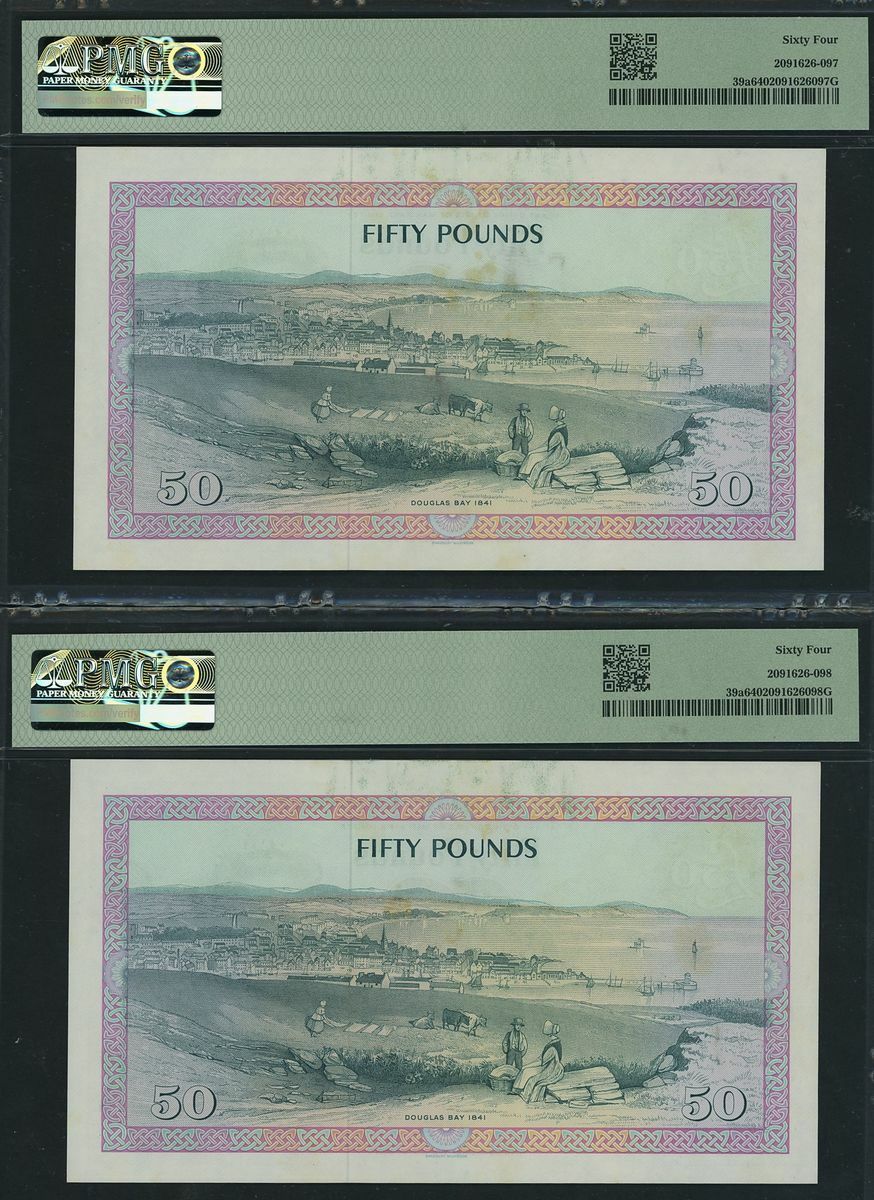 (x) Isle of Man Government, [2 notes] consecutive pair, £50, ND (1983), serial numbers 063797, 98, (IMPS M528, Pick 39a), in PMG holders 64 Choice Uncirculated (2 notes)