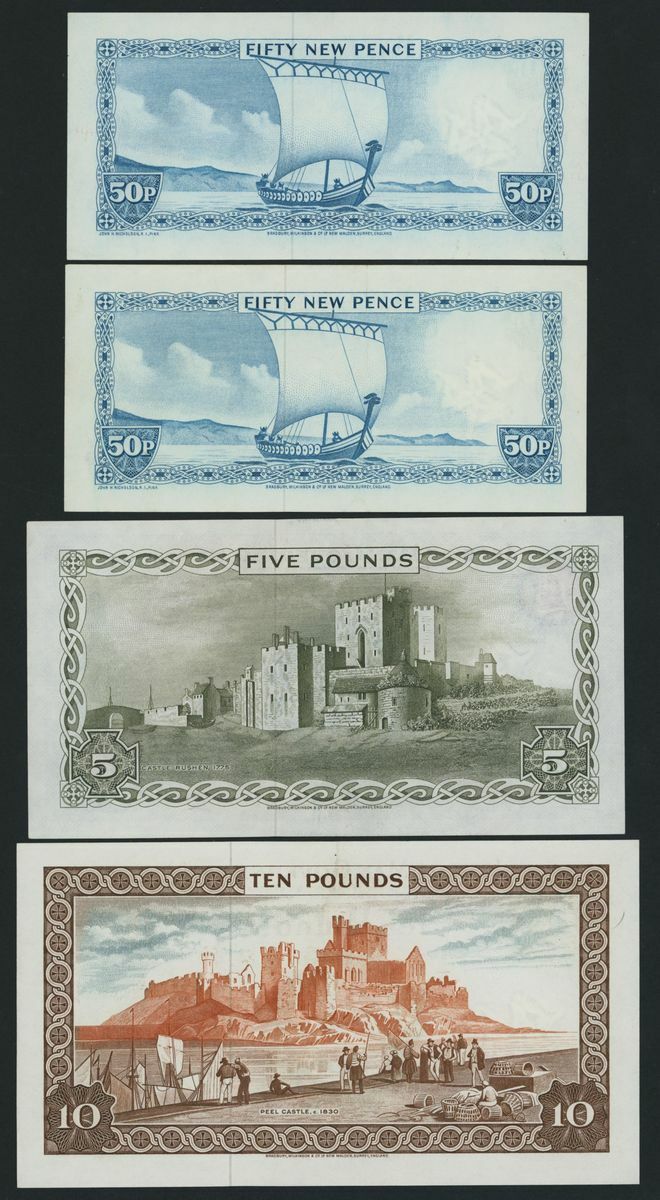 Isle of Man Government, [7 notes] 50 Pence, £1, £5, £10, 1981-1988,