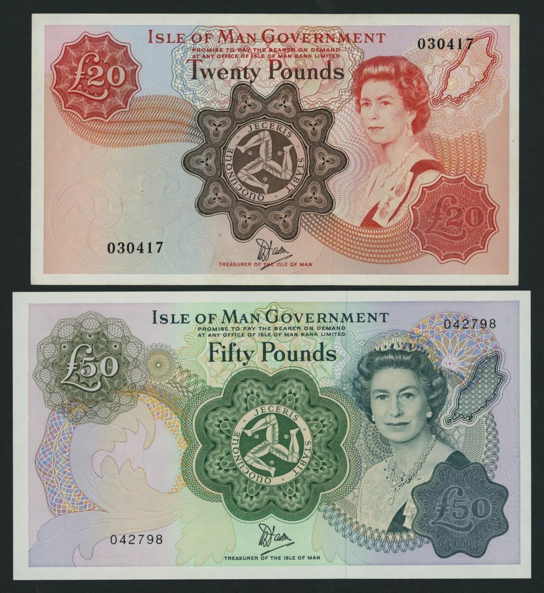 Isle of Man Government, [2 notes] £20, £50, 1979-83, (IOMPM M257, M528), about uncirculated to uncirculated, counting crease (2 notes)