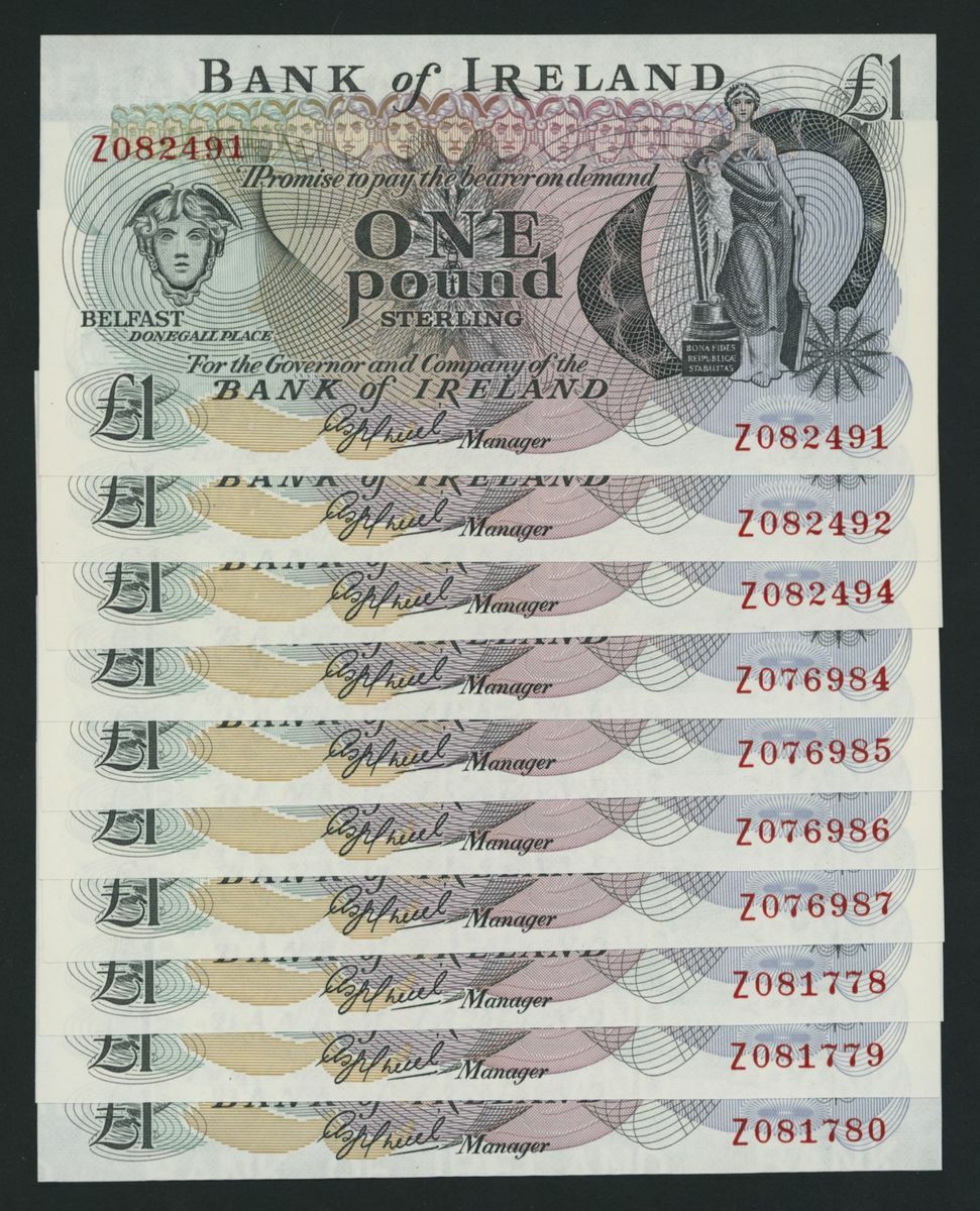 Bank of Ireland, [some consecutive, replacement], (10 notes), £1, Belfast, 1983, prefix Z,