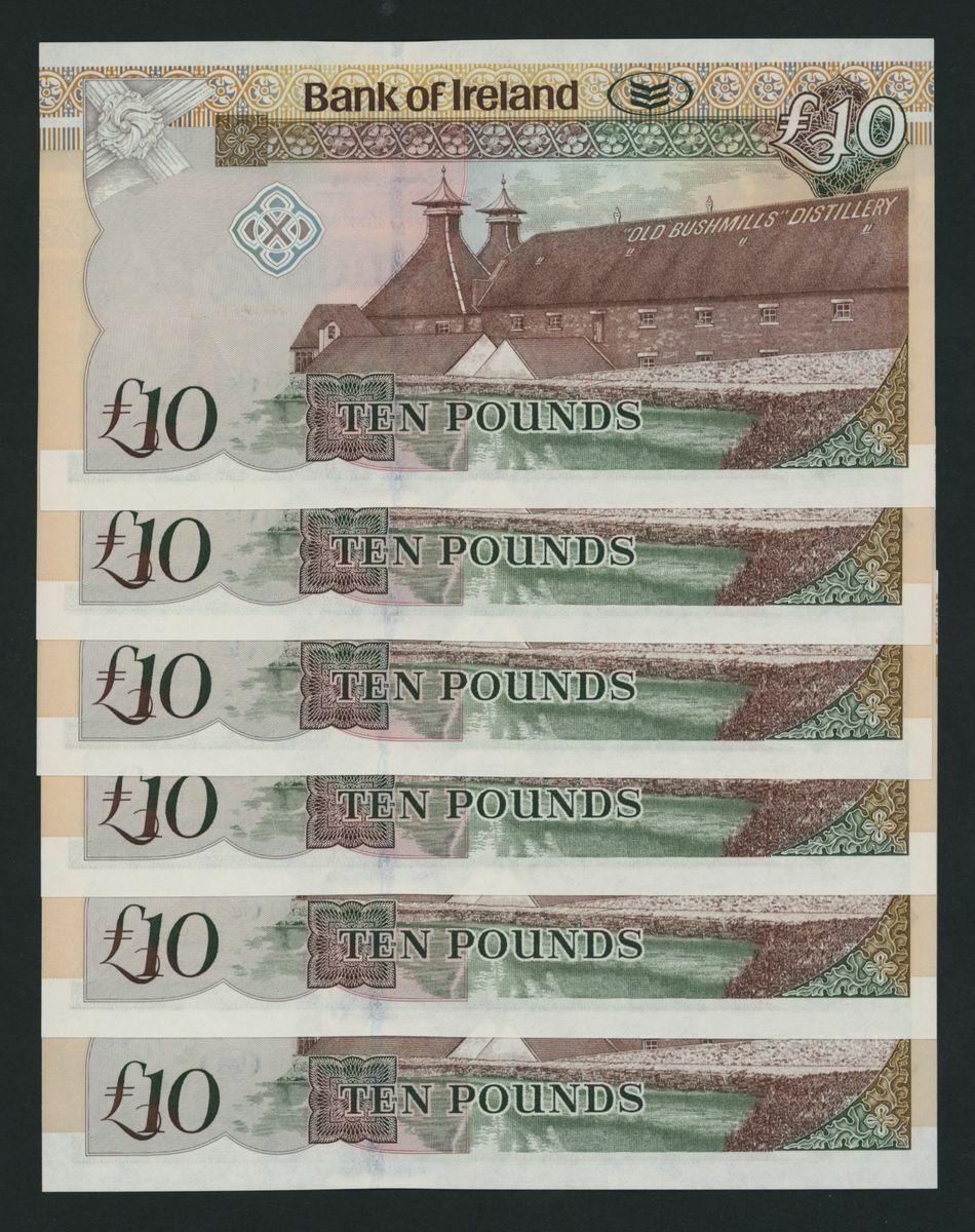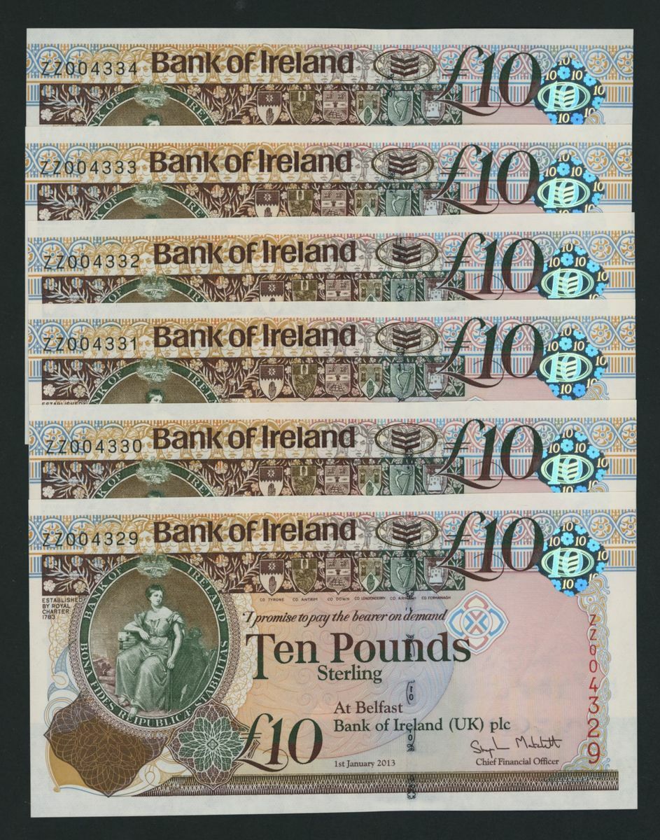 Bank of Ireland, [consecutive set, replacements], (6 notes), £10, Belfast, 1st January 2013, ZZ prefix,