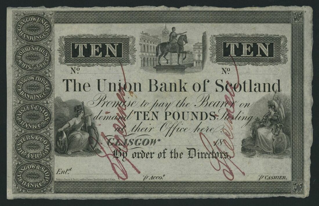 Union Bank of Scotland, specimen £10, Glasgow, dated 18--, 'specimen' handwritten on obverse,