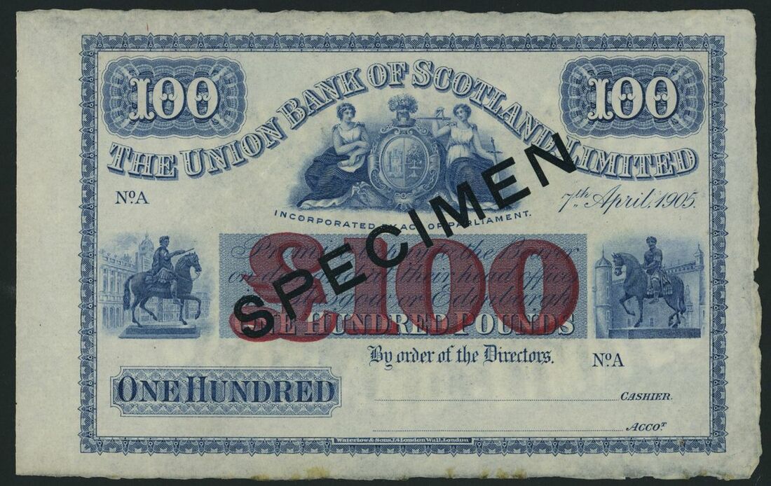 Union Bank of Scotland, specimen £100, 7th April 1905, (PMS UB 61), very fine, mounting remnants