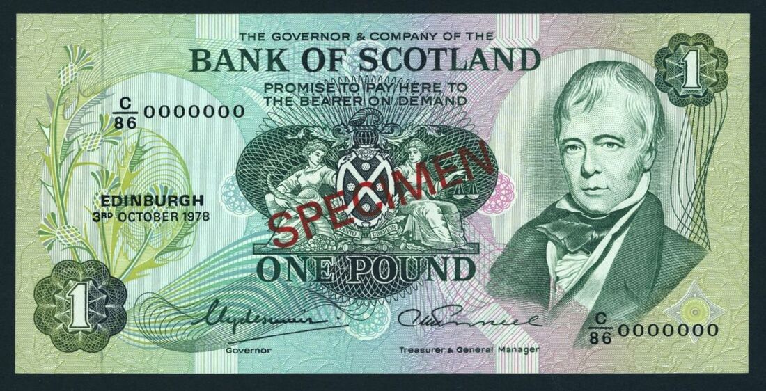 Bank of Scotland, specimen £1, Edinburgh, 3rd October 1978, serial number C/86 000000, (PMS BA 113cs), uncirculated