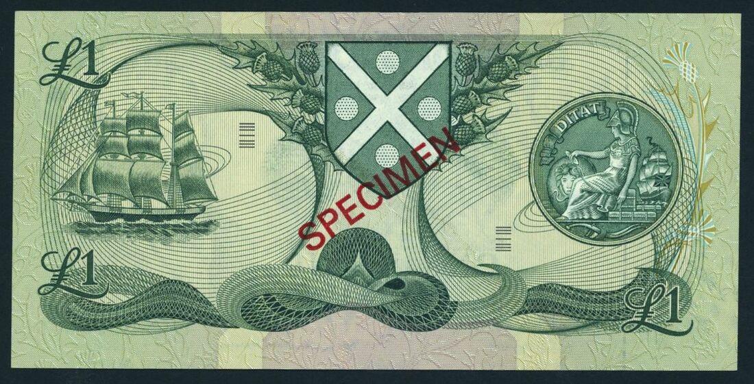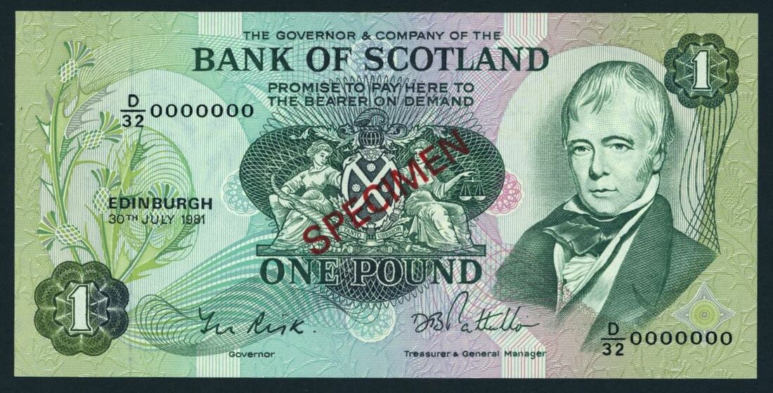 Bank of Scotland, specimen £1, Edinburgh, 31st July 1981, serial number D/32 000000, (PMS BA 113es), about uncirculated, evidence of handling