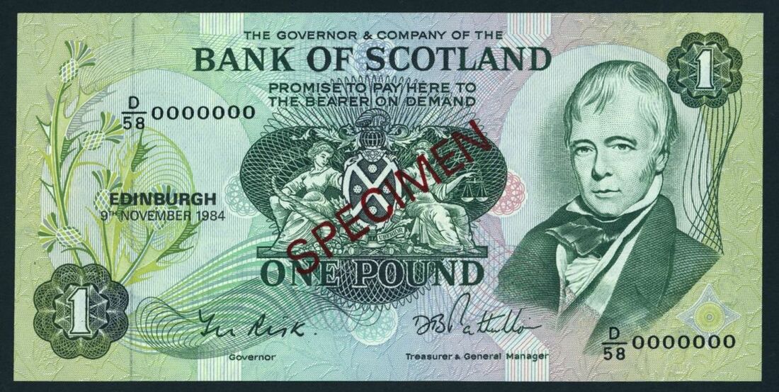 Bank of Scotland, specimen £1, Edinburgh, 9th November 1984, serial number D/58 000000, (PMS BA 113fs), uncirculated
