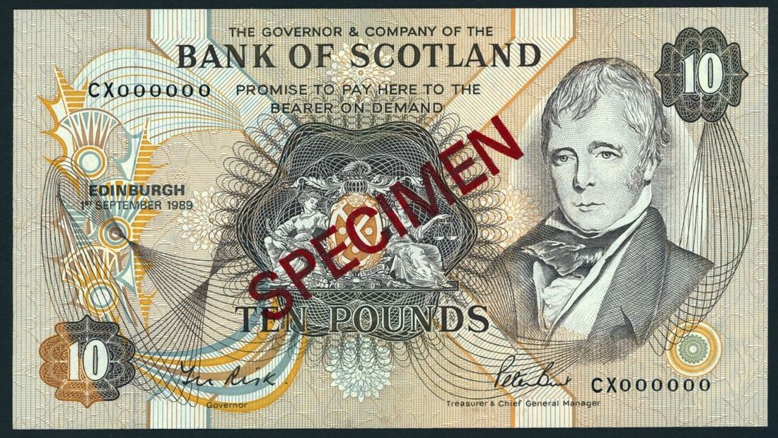 Bank of Scotland, specimen £10, Edinburgh, 1st September 1989, serial number CX 000000, (PMS BA 116cs), about uncirculated, evidence of handling