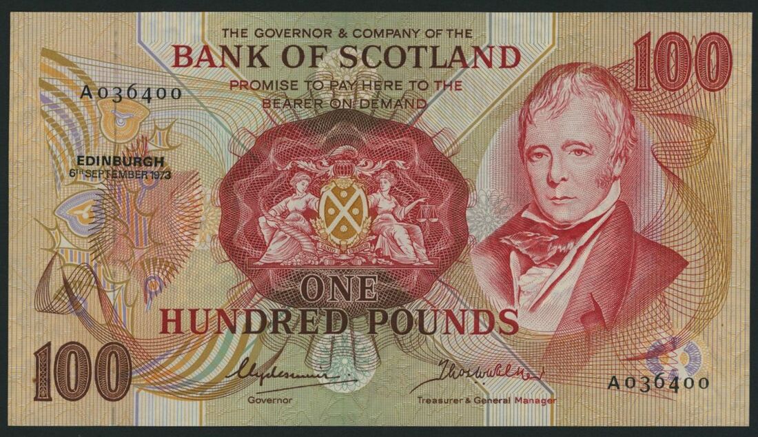 Bank of Scotland, £100, Edinburgh, 6th December 1973, serial number A036400, (PMS BA 120b), uncirculated