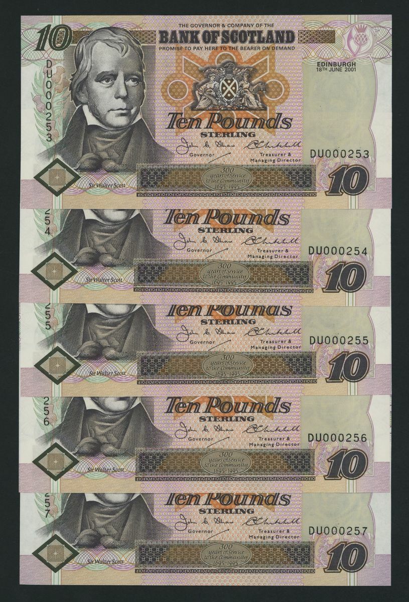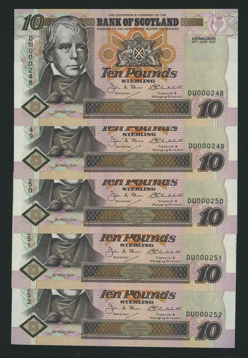 Bank of Scotland, [consecutive set] (10 notes), £10, Edinburgh, 18th June 2001, first prefix