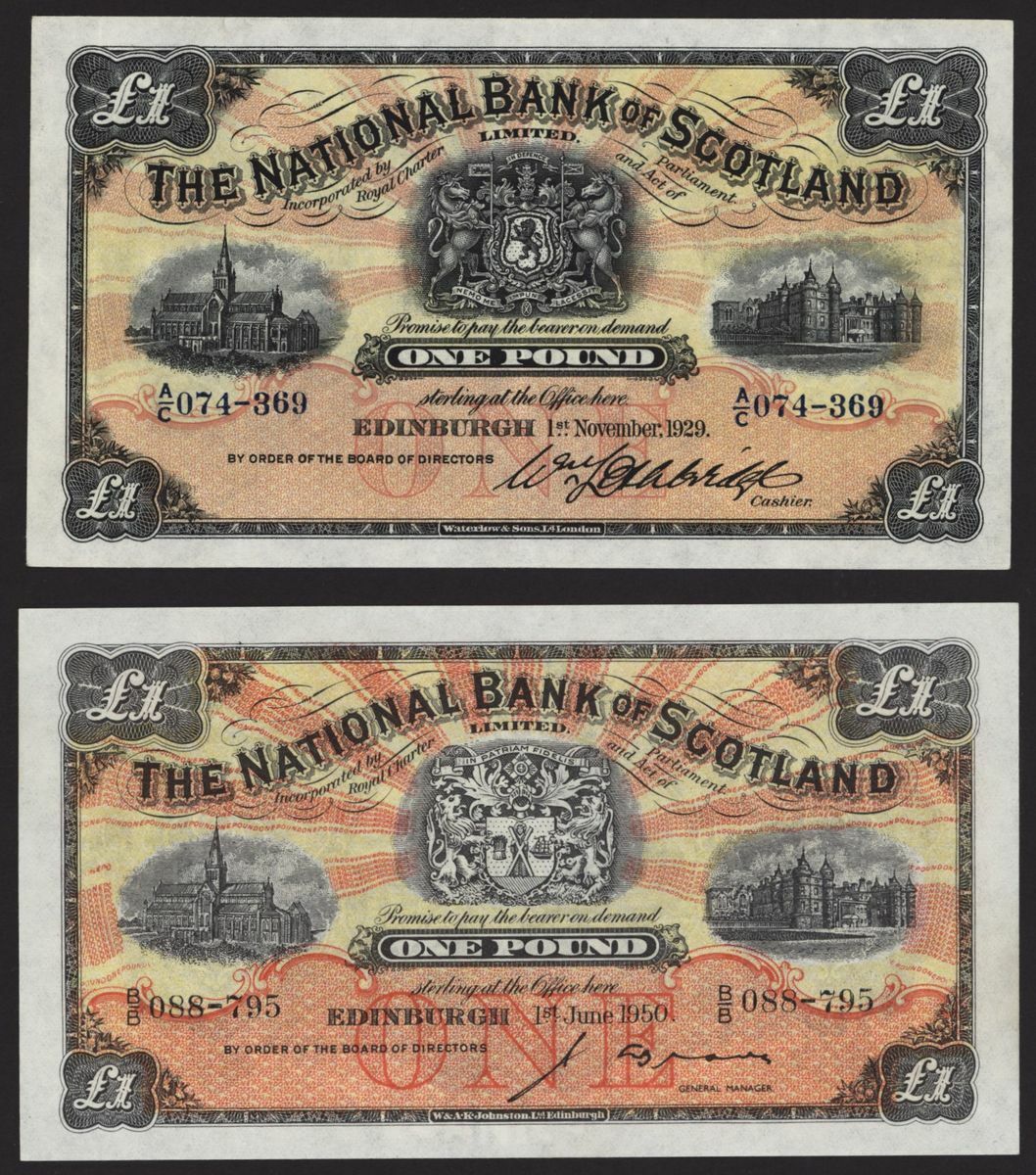 National Bank of Scotland, [2 notes] £1, Edinburgh, 1929-1950,
