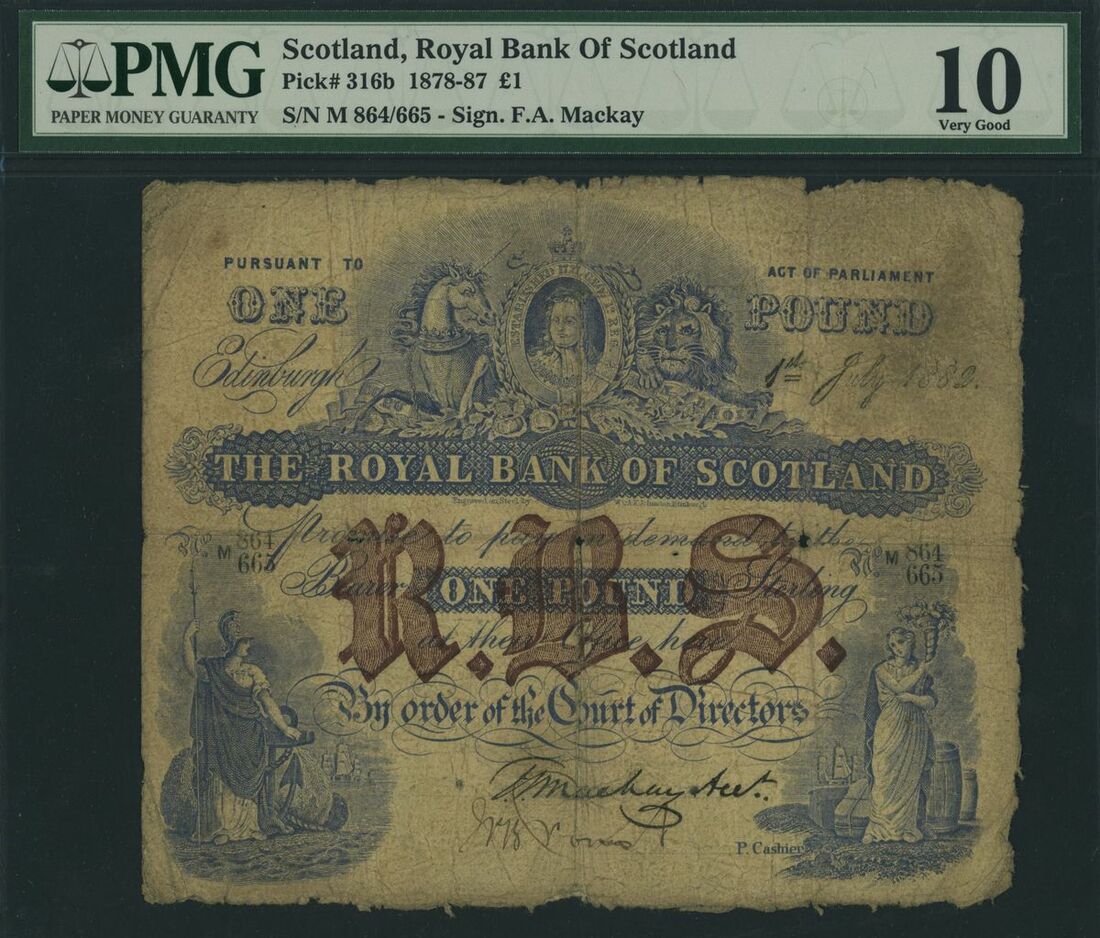 Royal Bank of Scotland, [TOP POP] £1, Edinburgh, 1st July 1882, serial number M 864/665, (PMS RB 53b), in PMG holder 10 Very Good, sole note graded on PMG Census!