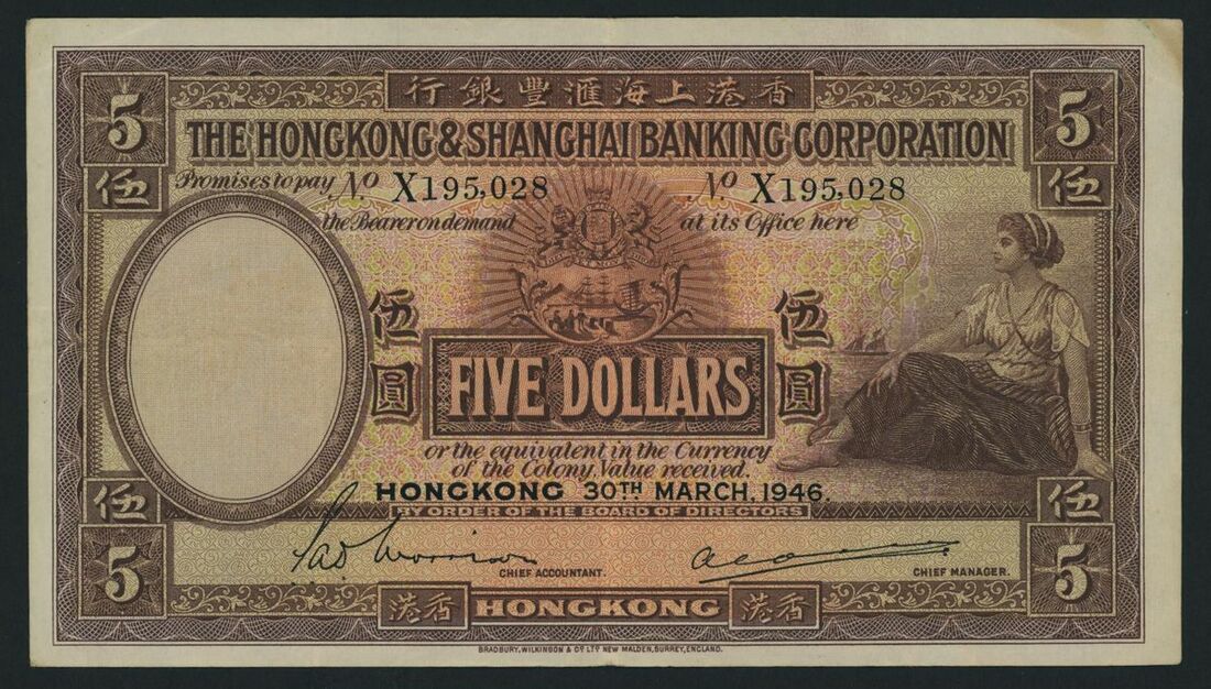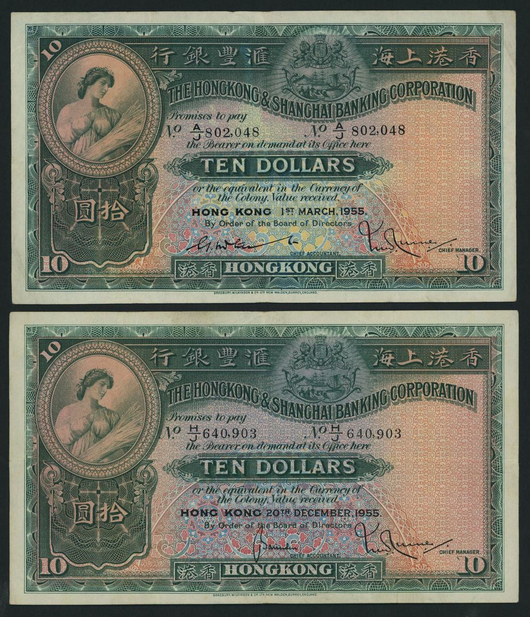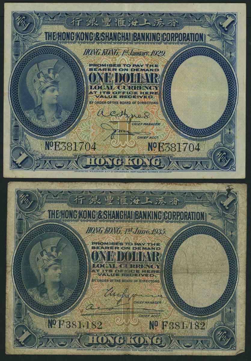 Hong Kong and Shanghai Banking Corporation, [5 notes] 1, 5, 10 Dollars, Hong Kong, 1929-55,