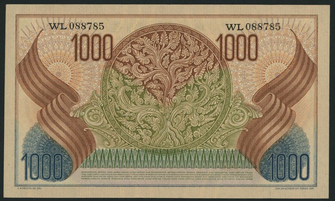 Bank Indonesia, 1000 Rupiah, 1952, serial number WL088785, (Pick 48, BNB 507), about uncirculated