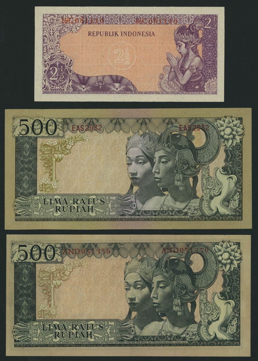 Indonesia, [3 notes] 1 1/2, 500 Rupiah, 1960-1,