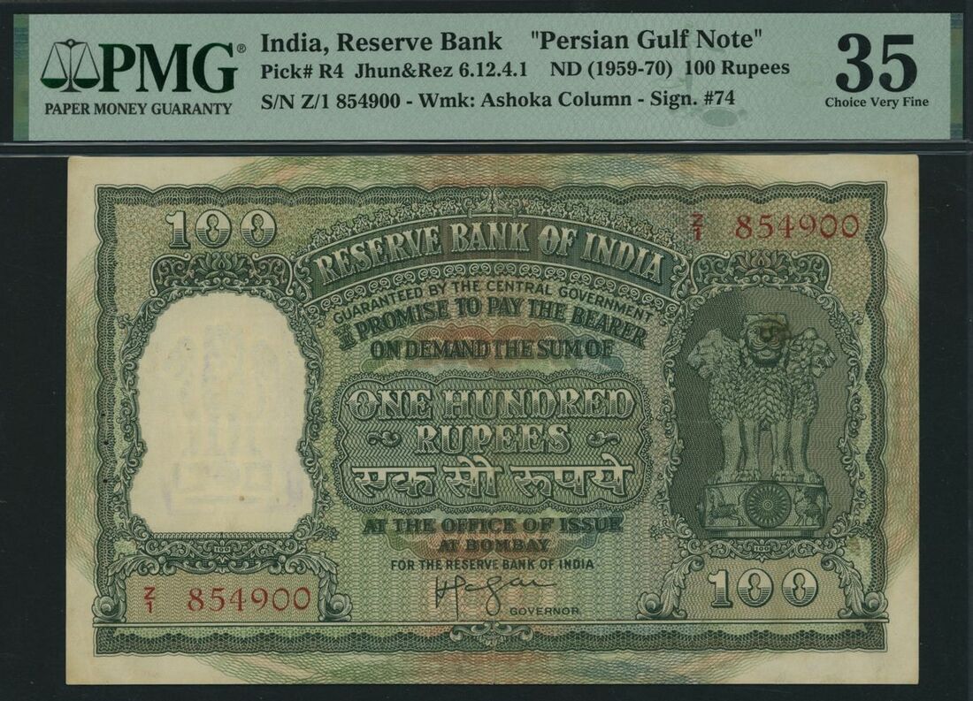 (x) Reserve Bank of India, Persian Gulf Issue, 100 Rupees, ND (1959-70), serial number Z/1 854900,