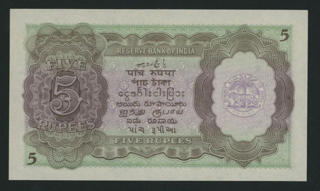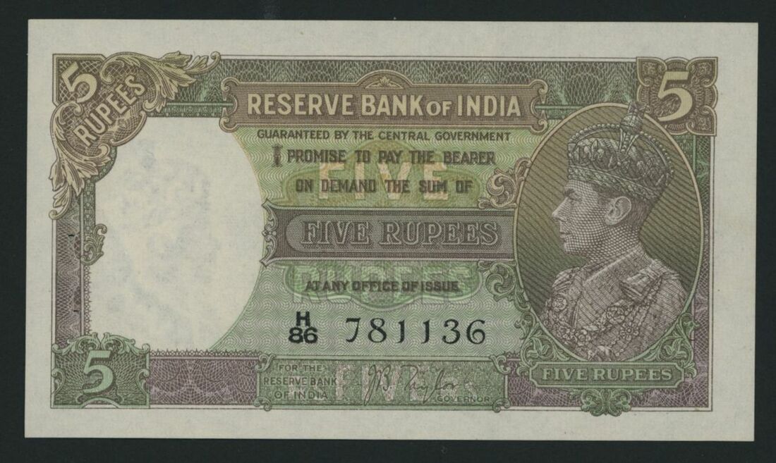 Reserve Bank of India, 5 Rupees, ND (1938), serial number H/86 781136, (Pick 18a, BNB 202), good extremely fine