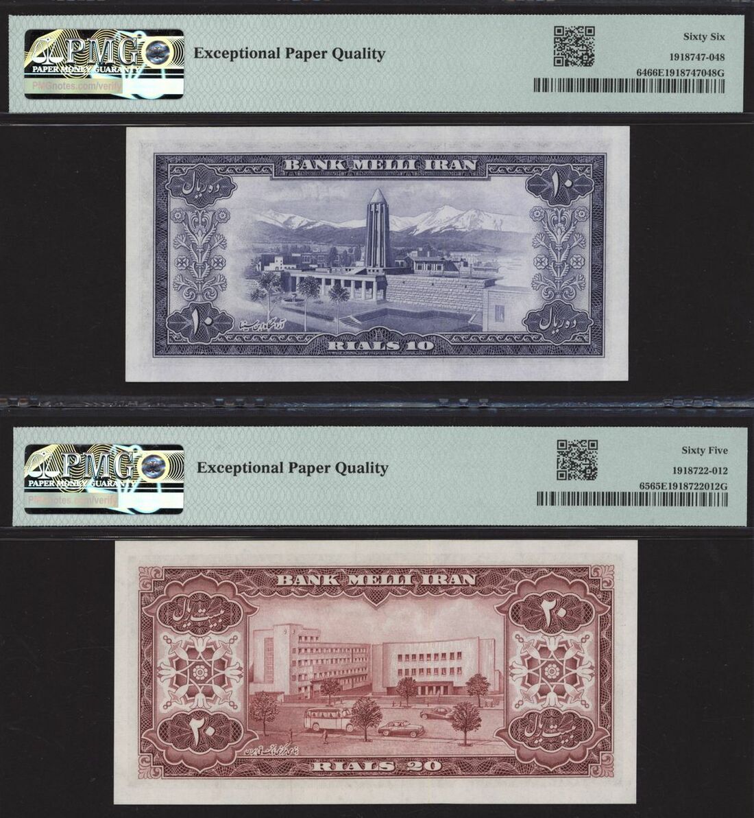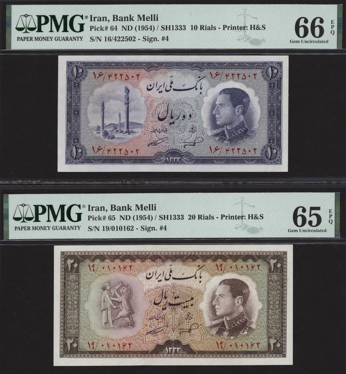 (Pick 64, 65, BNB 154, 155), in PMG holder 66 EPQ Gem Uncirculated (1), 65 EPQ Gem Uncirculated (1), (2 notes). This lot is subject to import restrictions into certain countries.