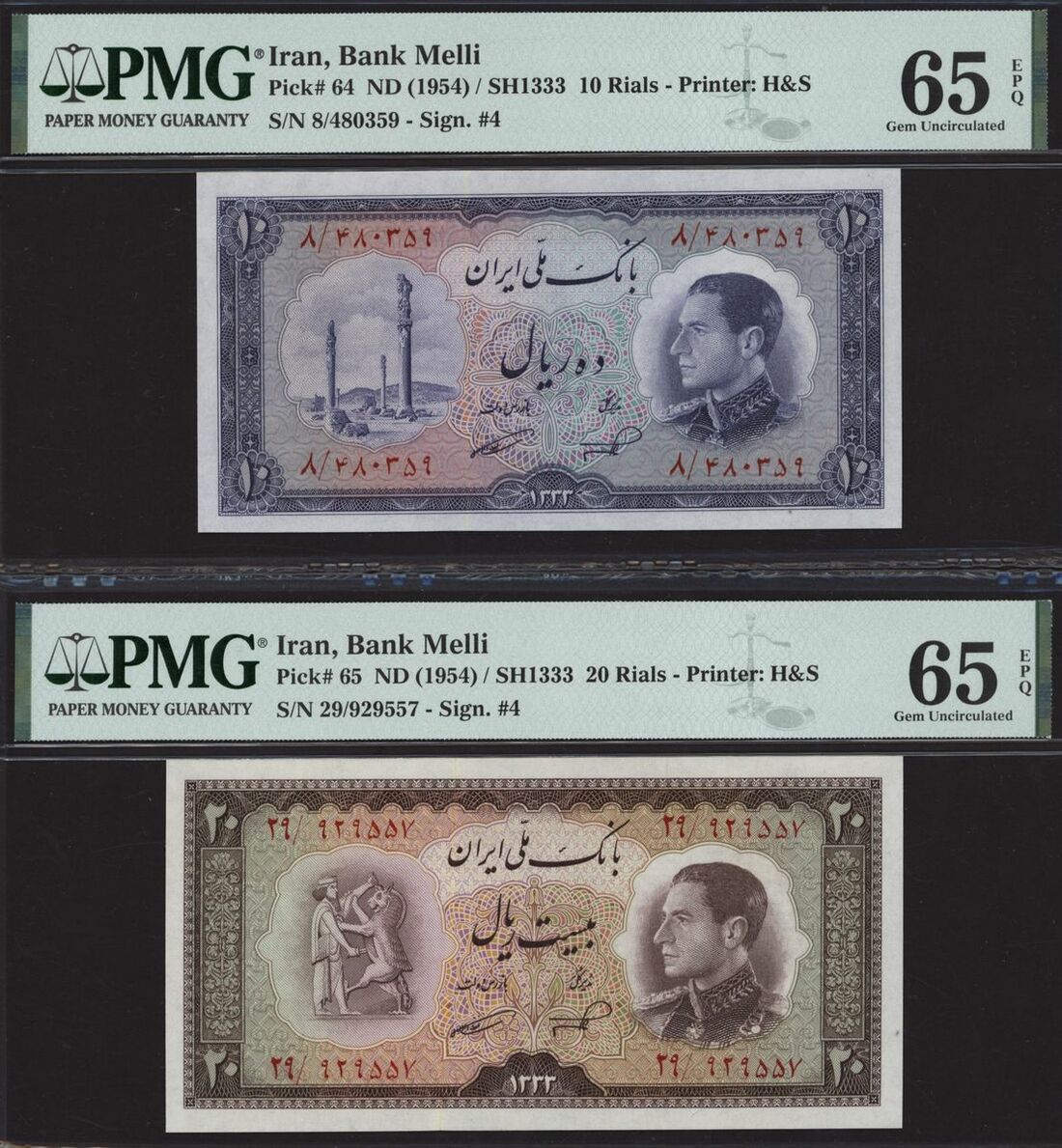 (Pick 64, 65, 67, BNB 154, 155, 157), in PMG holder 65 EPQ Gem Uncirculated (total 3 notes). This lot is subject to import restrictions into certain countries.