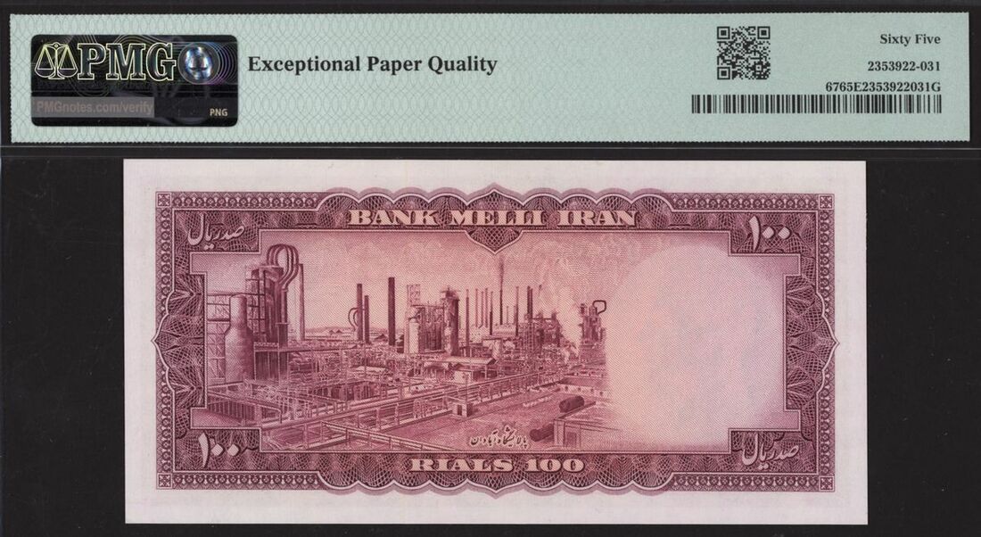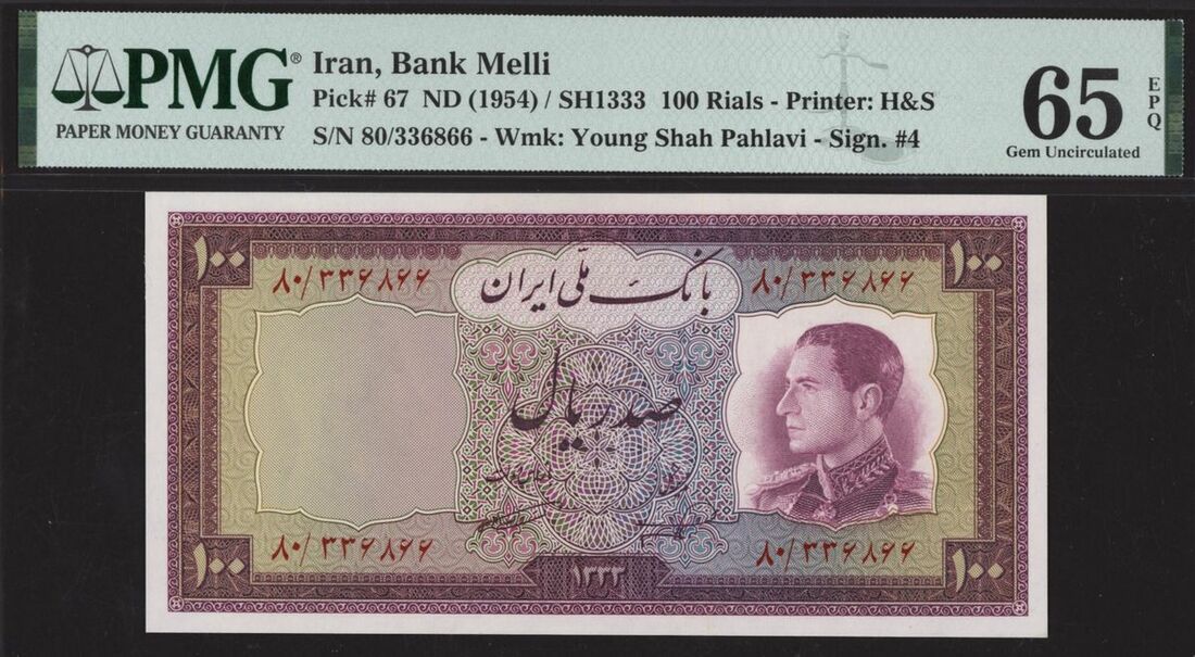 100 Rials, ND (1954) / SH1333, serial number 80/336866,