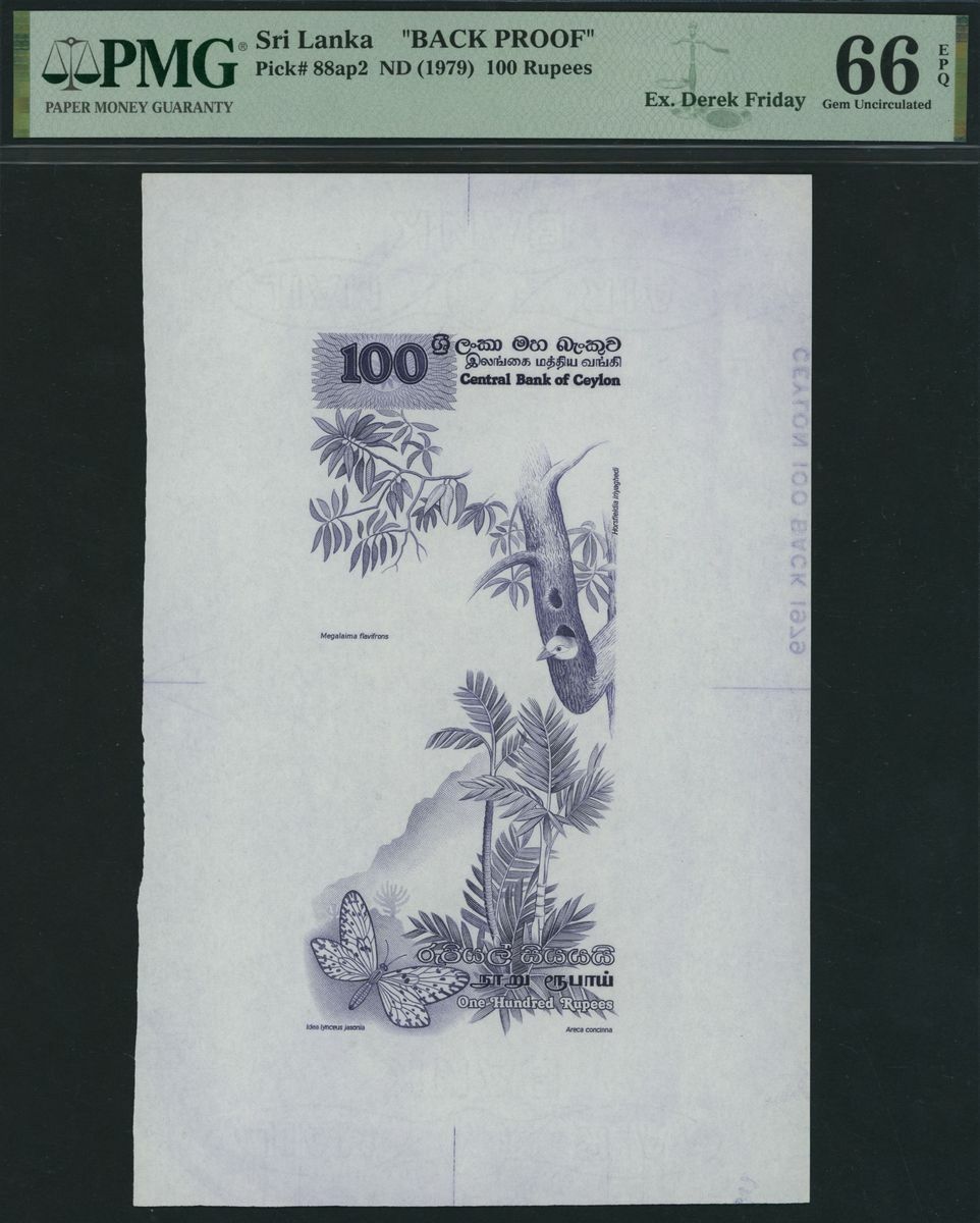 (x) Sri Lanka, [Back Proof] 100 Rupees, ND (1979), no serial number, (Pick 88ap2), in PMG holder 66 EPQ Gem Uncirculated