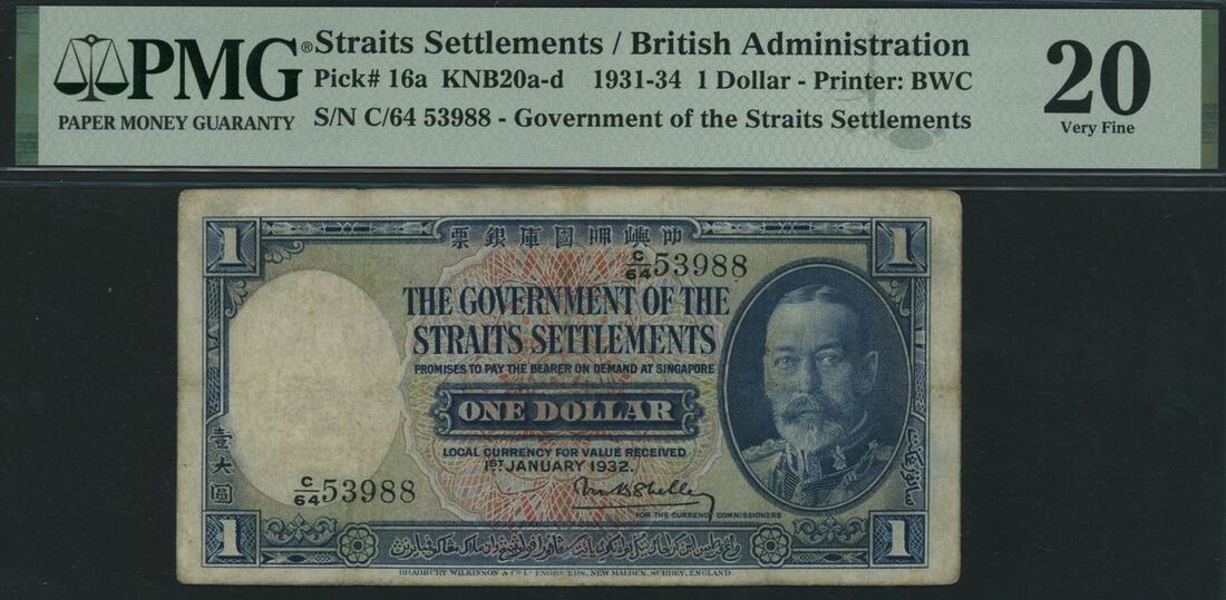 (x) Government of the Straits Settlements, 1 Dollar, 1st January 1932, serial number C/64 53988, (Pick 16a, BNB 121b), in PMG holder 20 Very Fine, repaired