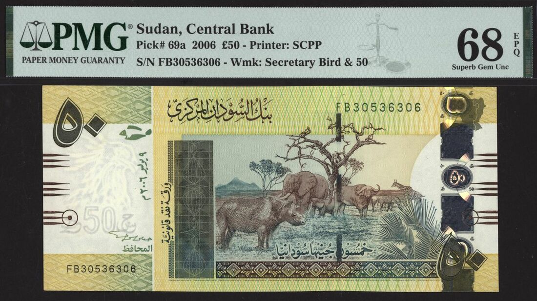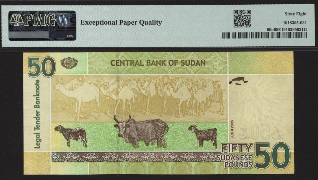 (x) Central Bank of Sudan, [Top Pop] £50, 9th July 2006, serial number FB30536306, (Pick 7bs BNB 406a), in PMG holder 68 EPQ Superb Gem Uncirculated