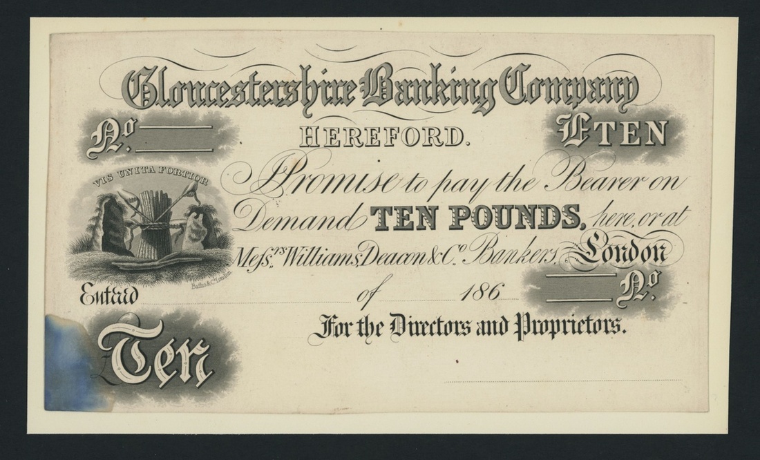 Gloucestershire Banking Company, unissued £10, Hereford, dated 186-, uniface,