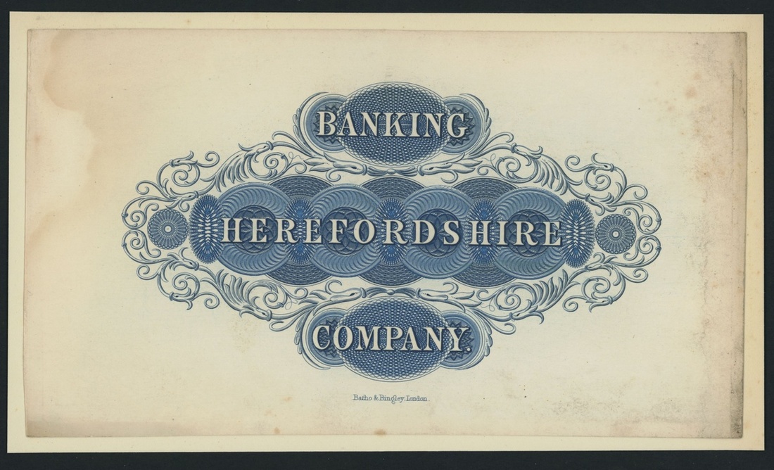 Herefordshire Banking Company, [2 notes] reverse designs, no denomination, one is stamped 'SPECIMEN', uniface,
