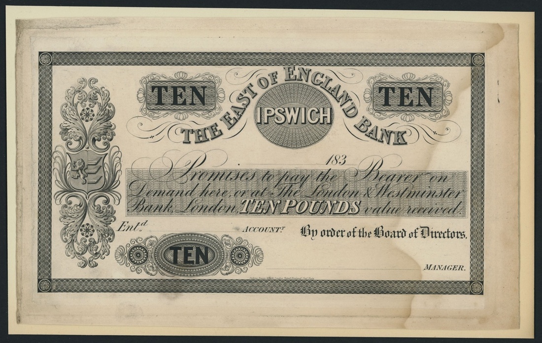 The East of England Bank, proof £10, Ipswich, dated 183-,