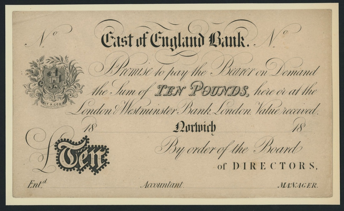 The East of England Bank, proof £10, Norwich, dated 18--,