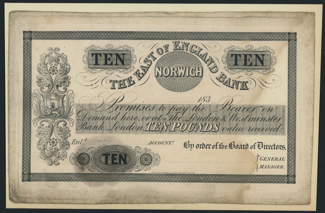 The East of England Bank, proof £10, Norwich, dated 183-,