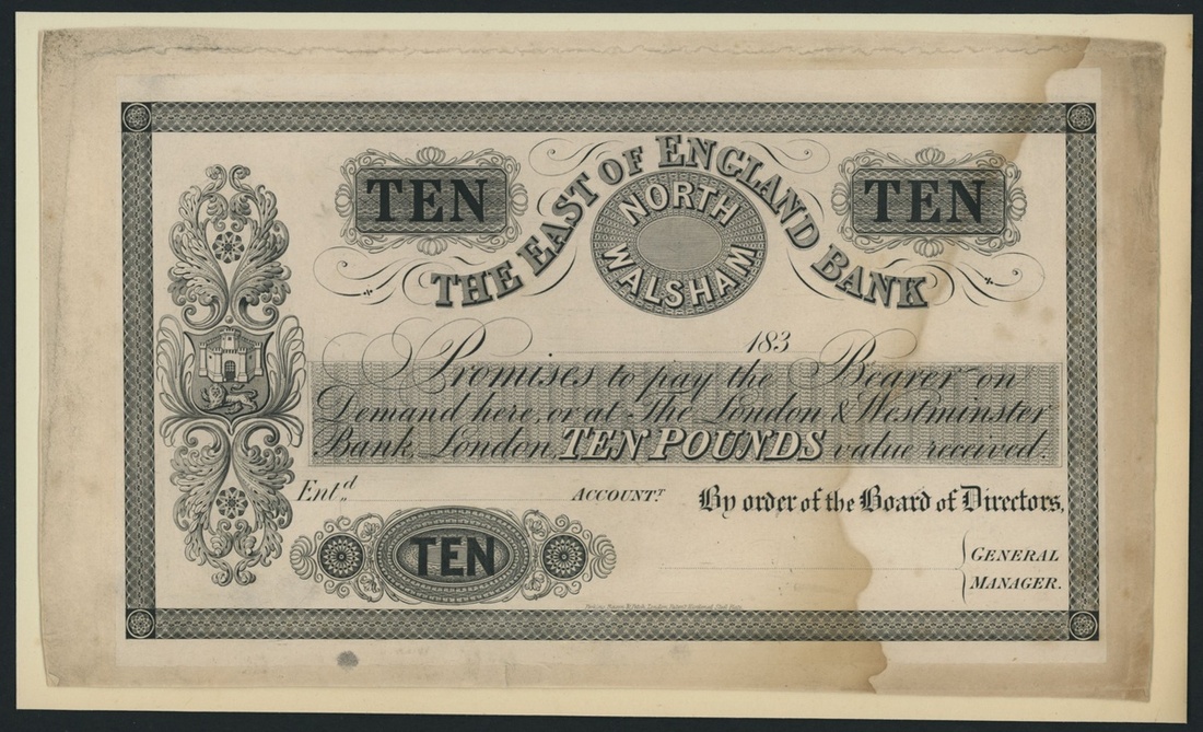 The East of England Bank, proof £10, North Walsham, dated 183-,