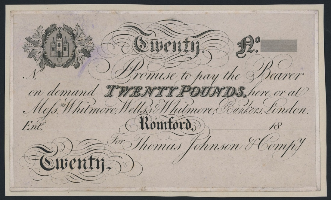 Romford Bank, unissued £20, Romford, dated 18--, uniface,