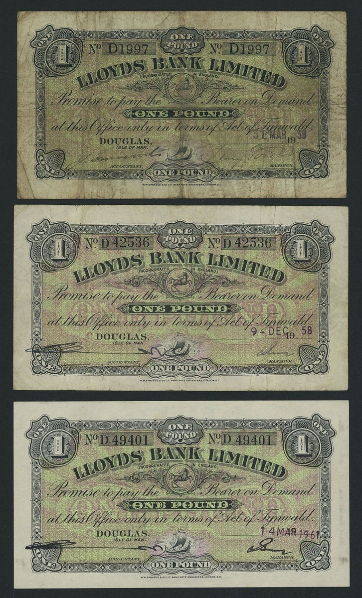 Lloyds Bank Limited, Isle of Man, [3 notes], £1, Douglas, 1938-1961,