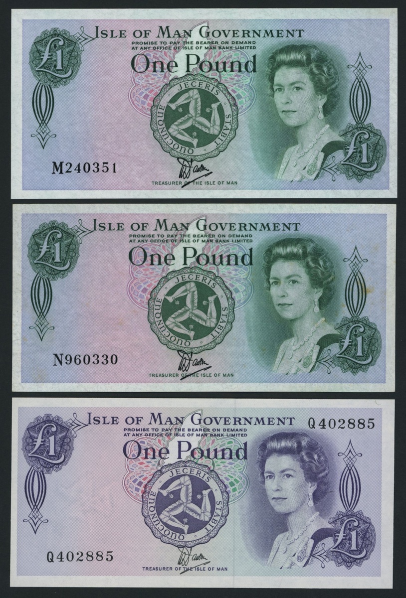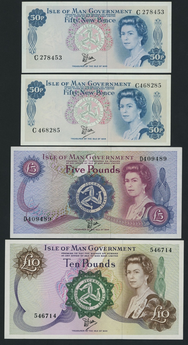 Isle of Man Government, [7 notes] 50 Pence, £1, £5, £10, 1981-1988,
