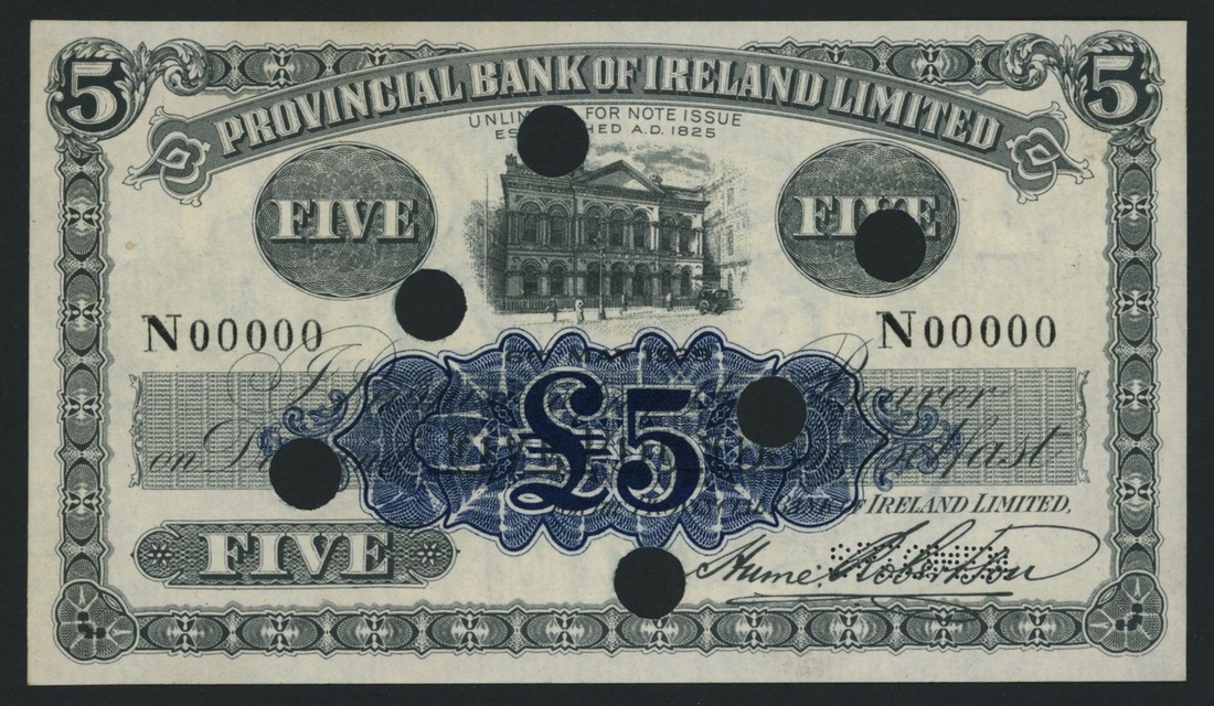 Provincial Bank of Ireland Limited, Northern Ireland, specimen £5, Belfast, 6th of May 1929, serial number N00000, (Pick 232s), in PMG holder...