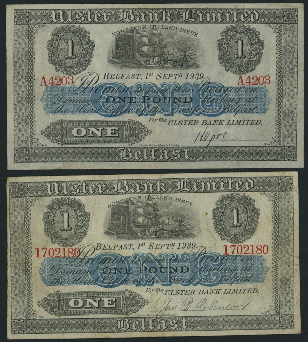 Ulster Bank Limited, [4 notes] £1, Belfast, 1939-56,