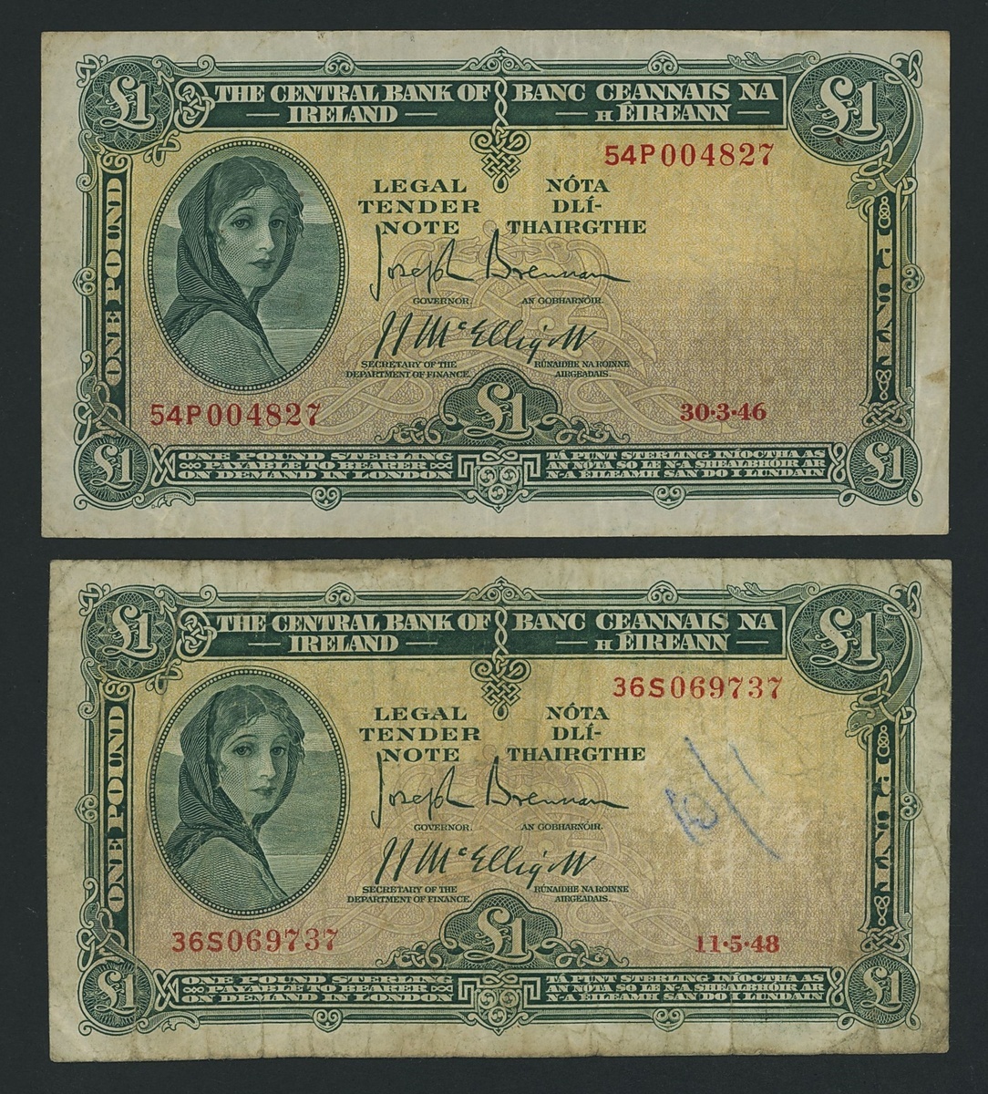 The Central Bank of Ireland, [9 notes] £1, £10, 1946-74,