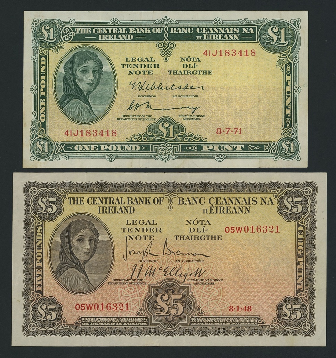 The Central Bank of Ireland, [11 notes] £1, £5, £10, 1948-1975,
