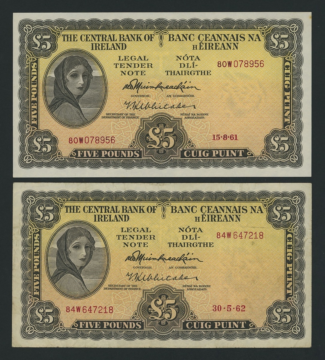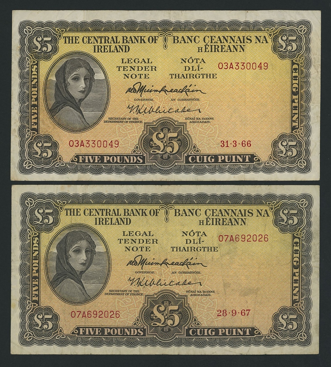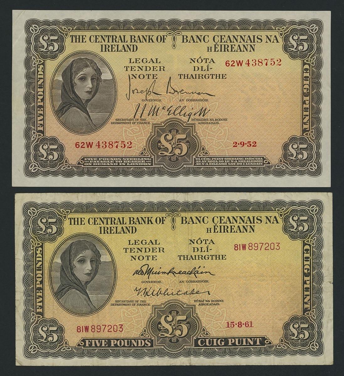 The Central Bank of Ireland, [15 notes] £5, £10, 1948-1968,