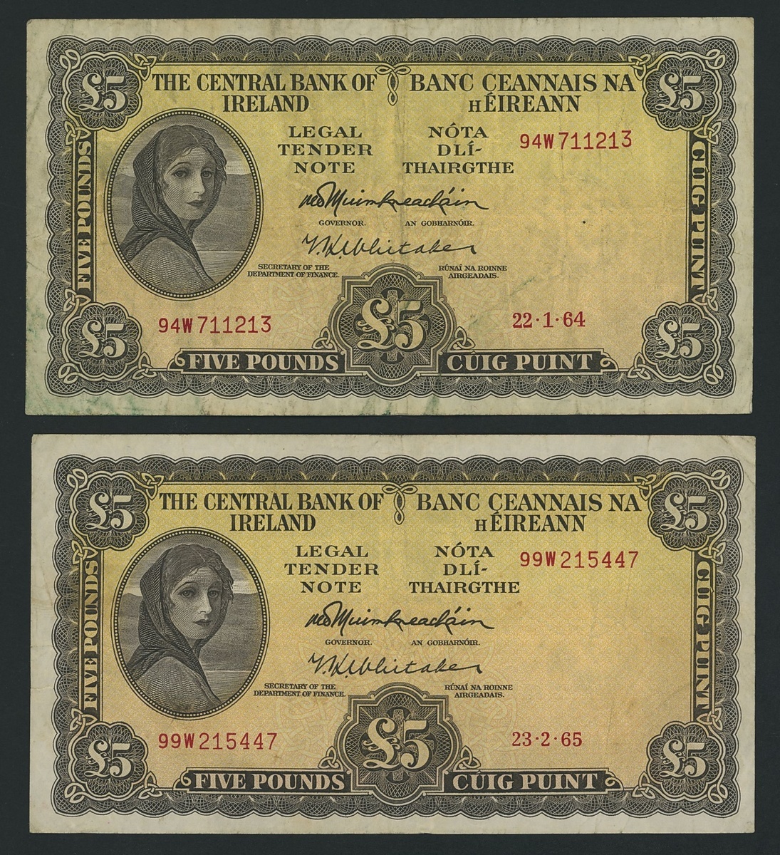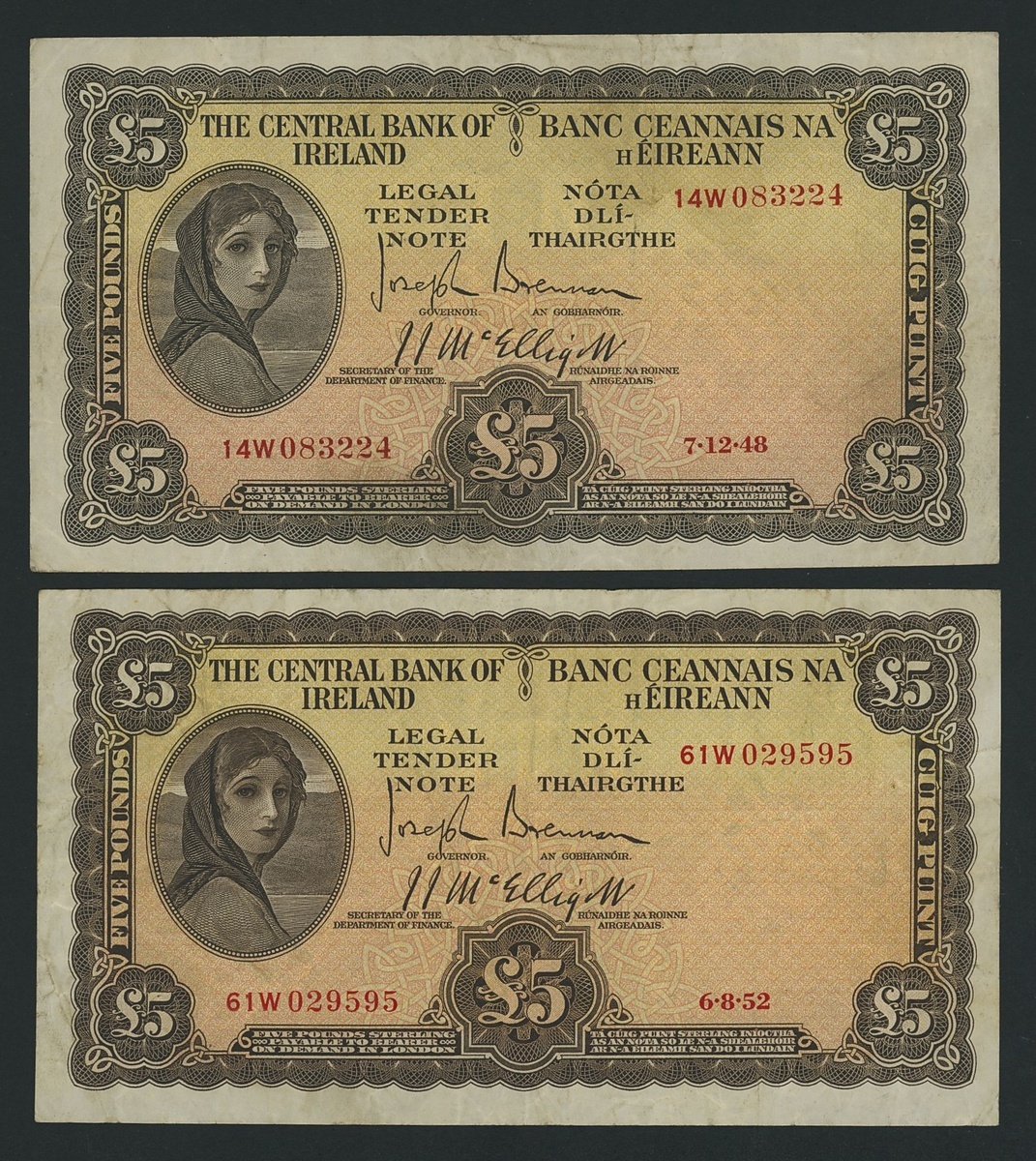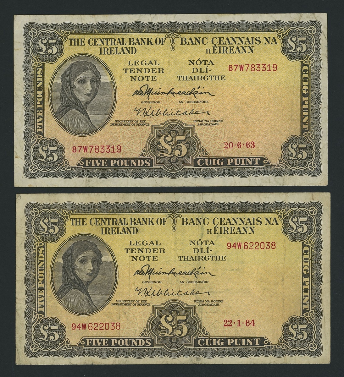 The Central Bank of Ireland, [15 notes] £5, £10, 1948-1968,