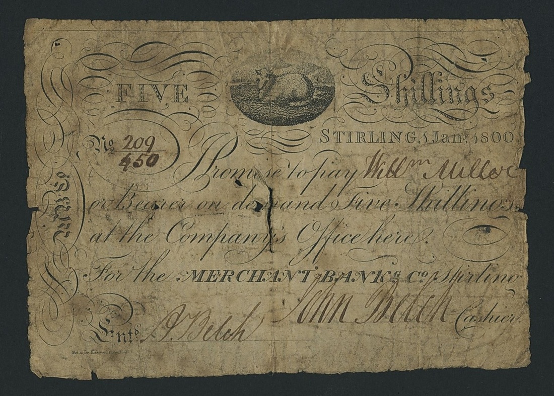 (x) Merchant Banking Company, Scotland, 1 Shilling, Stirling, January 1800, serial number 209/450,