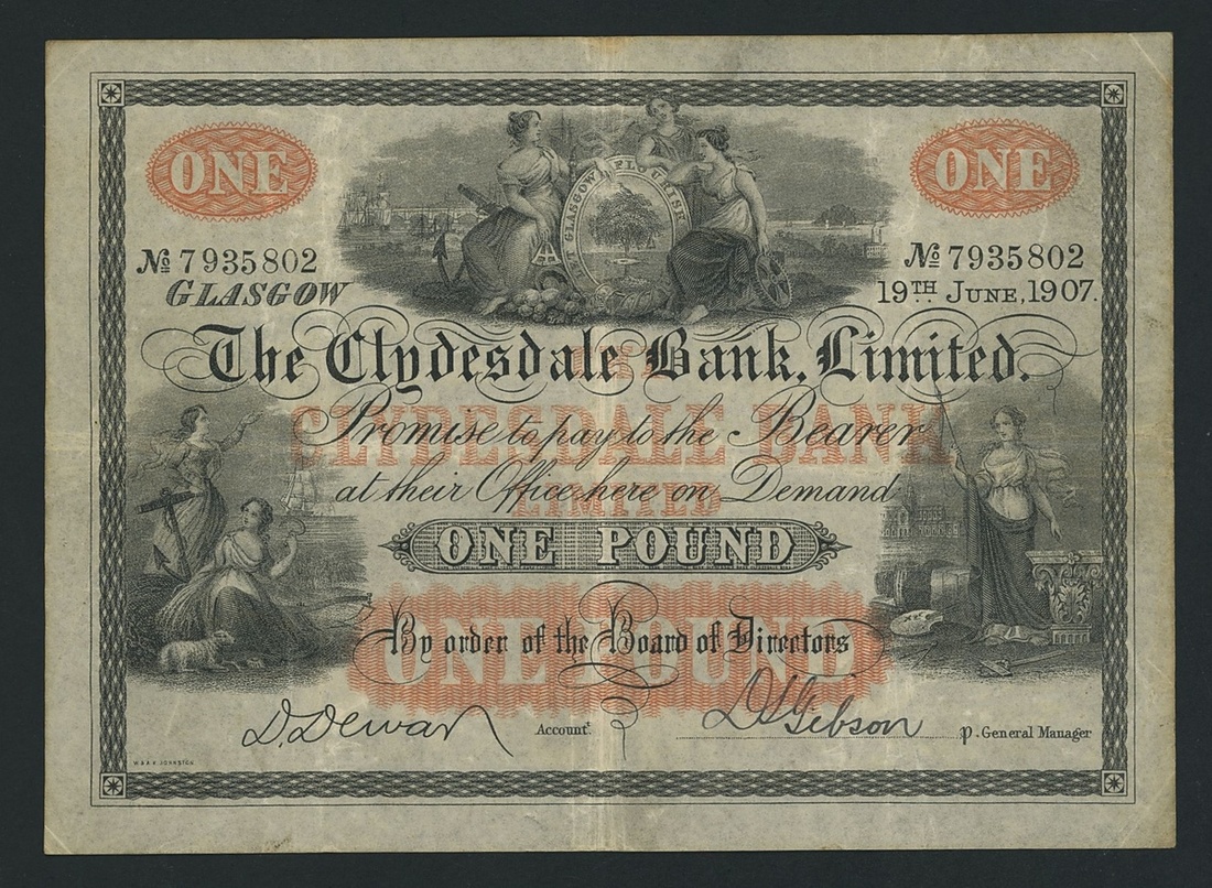 (x) The Clydesdale Bank, Limited, Scotland, £1, Glasgow, 19th June 1907, serial number 7935802, (Pick 181a), good fine