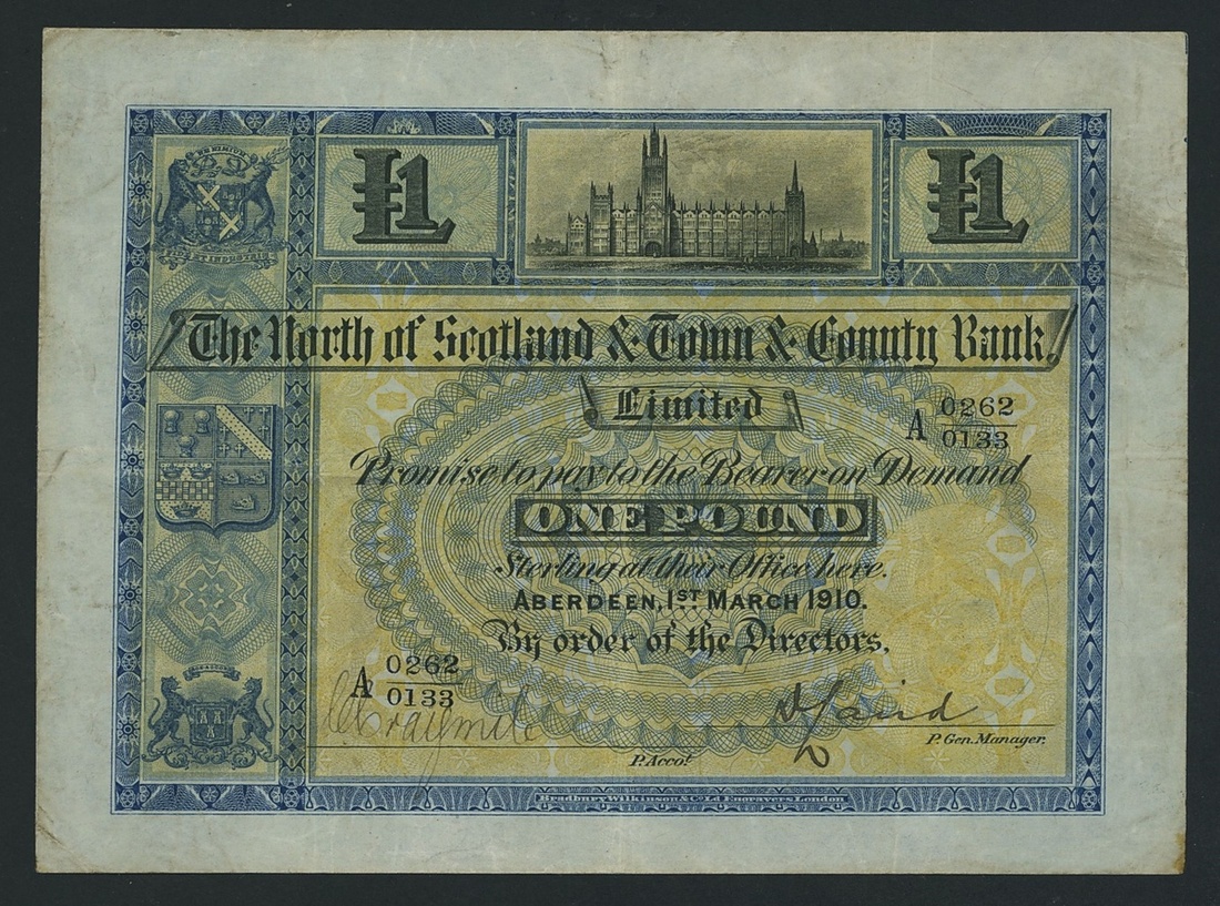(x) The North of Scotland & Town & Country Bank Limited, £1, Aberdeen, 1st March 1910, serial number A 0262/0133, (Pick S629), very fine
