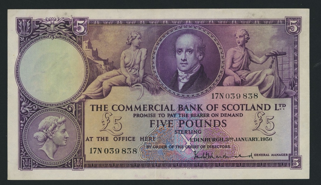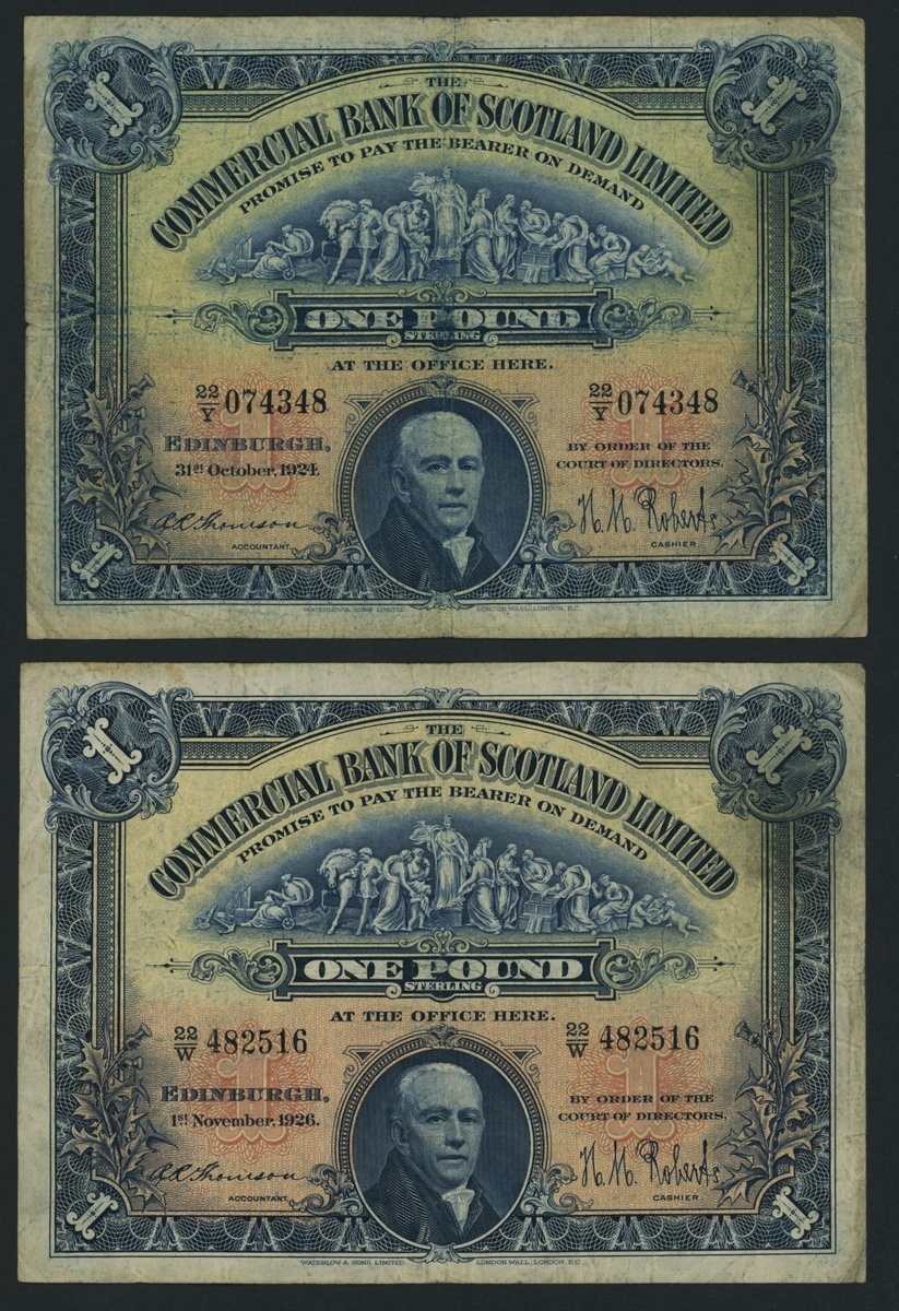 Commercial Bank of Scotland Limited, [5 notes] £1, £5, 1924-56, £1, 31st October 1924, serial number 22/Y 074348;