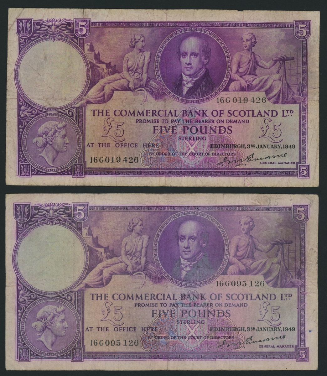 £5, 3rd January 1949 (2), serial numbers 16G019426 and 16G095126;
