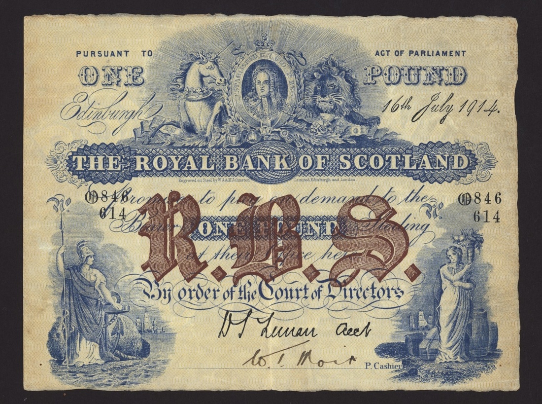 (x) The Royal Bank of Scotland, £1, Edinburgh, 16th July 1914, serial number O846/614,